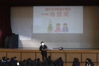 不審者の侵入を想定して、避難訓練を行いました。 児童の安全確保や侵入防止、警察への連絡などの訓練をしました。 訓練後は、スクールサポーターの方に防犯教室をしていただきました。 子どもたちは不審者に出会ってしまった時の身の守り方について考えることができました。
