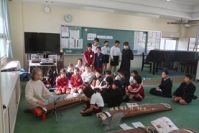 4〜6年生が音楽科の学習の一環として琴の体験をしました。 琴の先生をお招きし、弾き方を教えていただきました。 一音一音確かめながら、指につけた琴爪で弦をはじいて琴を鳴らしました。 簡単な曲の演奏にも挑戦しました。
