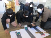 子どもたちは、自分の作ったプログラムで車を走らせることに挑戦しました。