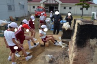 阿曽応援部の方々を野菜作りの先生としてお招きし、野菜作りに取り組みました。 苗の植え方や日々の世話などたくさんのことを教えていただきました。 子どもたちは、野菜に毎日水やりをしながら大切に育て、笑顔で収穫をすることができました。